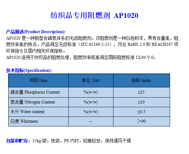 紡織品專用阻燃劑AP1020 2022-6-1 本文被閱讀 2345 次